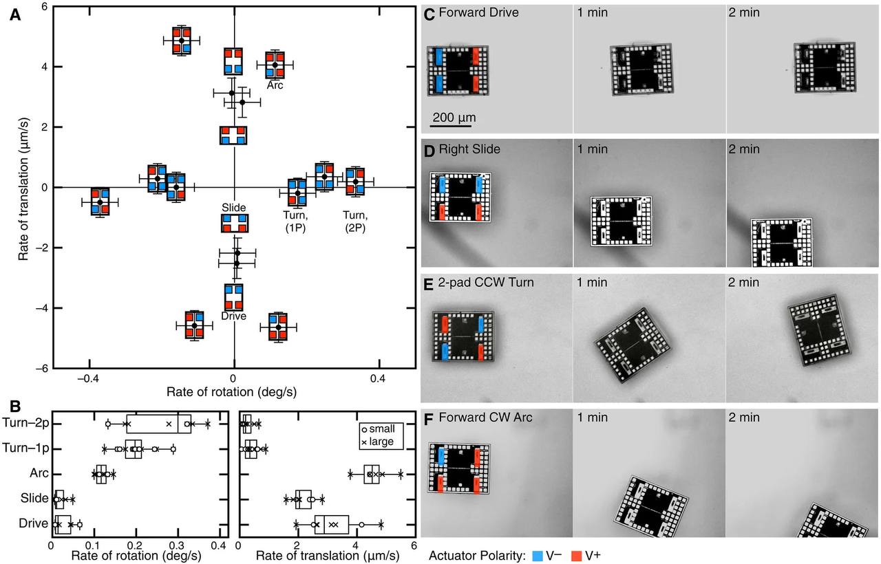 Благодаря полному контролю над электрическим полем микророботы могут двигаться по сложным траекториям: