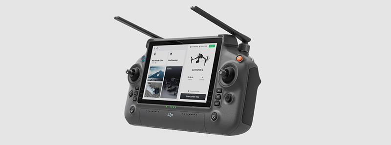 Управление DJI Inspire 3 происходит через пульт DJI RC Plus. Он оборудован 7-дюймовым экраном яркостью 1200 нит. Имеет выходной HDMI порт и множество кнопок, чьи функции можно настраивать под себя.